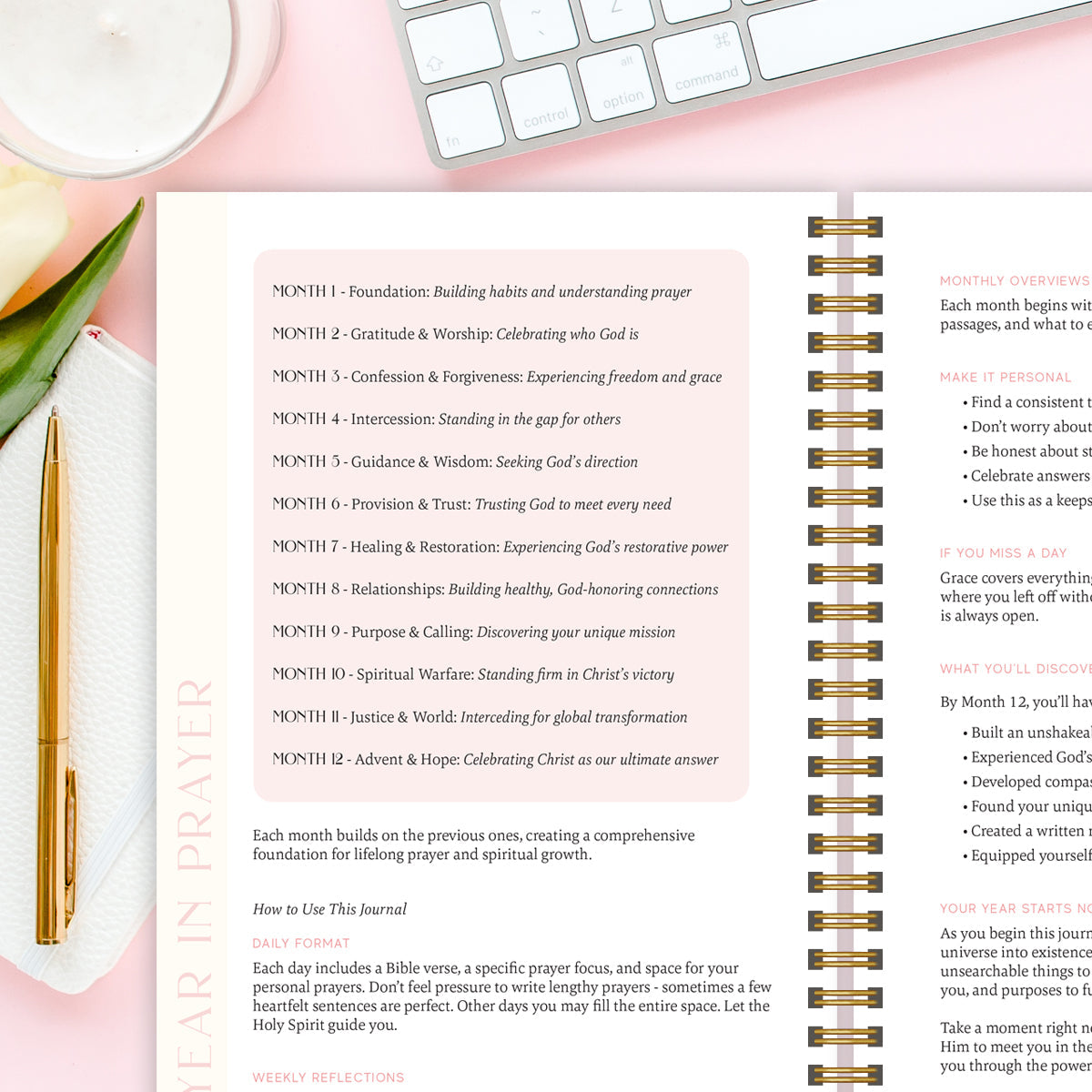 Each day offers a meaningful Scripture passage and guided reflection to help you draw closer to God through prayer. These prompts are designed to keep you consistent, focused, and inspired throughout your year of spiritual growth.